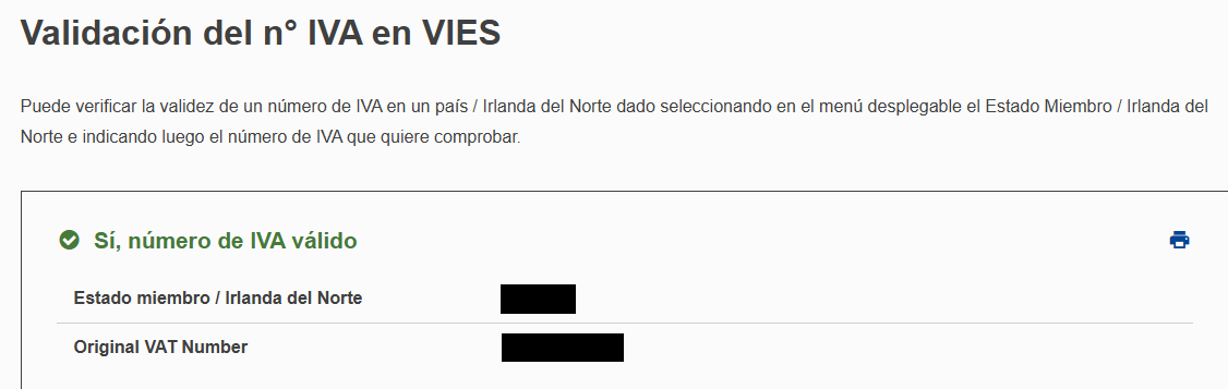 Para que un proveedor sea considerado comunitario a efectos fiscales, debe tener VAT UE válido. Este dato se puede comprobar en: Validación del n° IVA en VIES. Si el proveedor NO tiene VAT válido, NO es intracomunitaria y se tratará la operación como compra nacional.