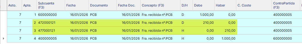 En las operaciones comunitarias se distingue la naturaleza del artículo/ de la línea. Se debe verificar que en el artículo/ en la línea de la factura (factura y su pedido de compra-/factura acreedor), esté informada la naturaleza correctamente (bienes/servicios). Al mismo tiempo, se deberá comprobar que en el tipo de IVA informado en la línea de la factura (21%) está informado correctamente el Régimen (tendría que ser el General).