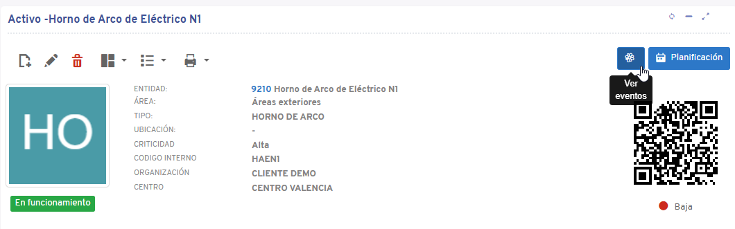 Si tenemos habilitado el tipo de evento cuando ocurre se visualizará desde la vista del Activo o desde la vista de la Peticiópn en función de la categoría del tipo de evento: