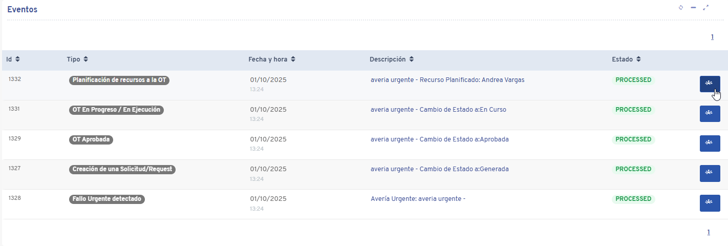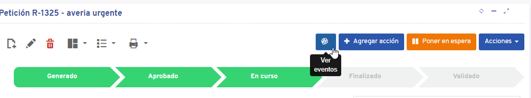 En ambos casos se muestra la lista de eventos vinculados al activo o a la petición:
