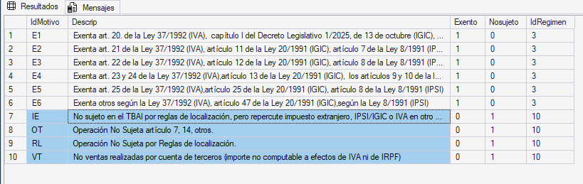 En validaciones/controles del SII-IGIC cuentan con campos específicos según el motivo de no sujeción: