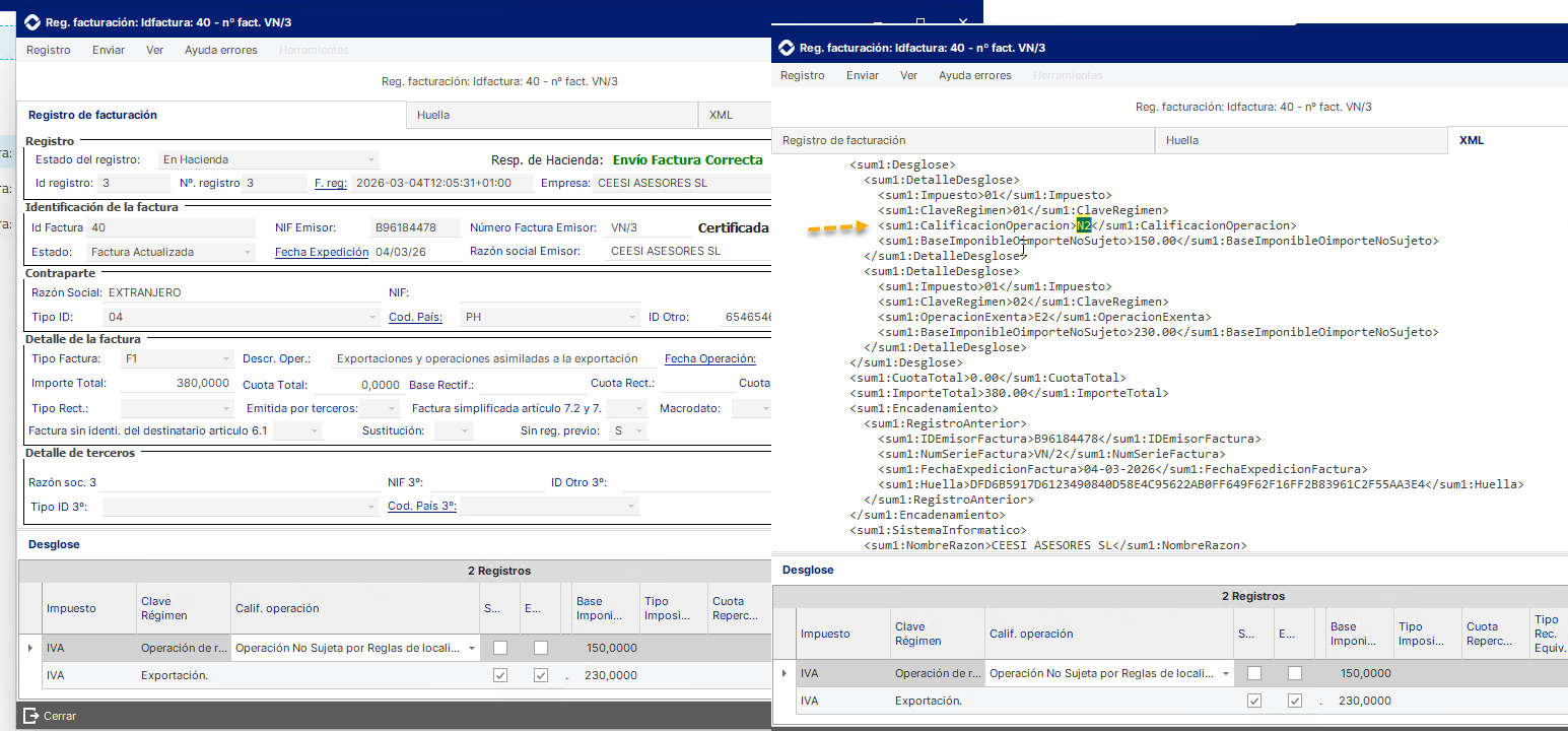 - N2 → Operación No Sujeta por reglas de localización: --> Un caso de uso son ventas a clientes extranjeros o comunitarios no sujetas.