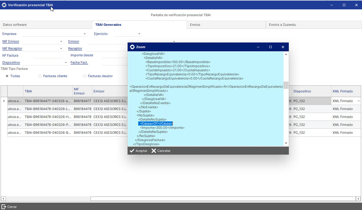 En TicketBAI: OT – No sujeto art. 7 y 14 LIVA.