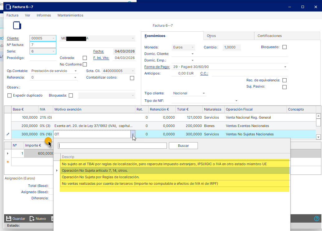 En TicketBAI: RL – No sujeto por reglas de localización.